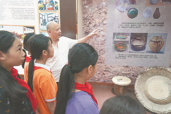 晉江磁灶鎮(zhèn)嶺畔村,吳吉祥在親手創(chuàng)建的村陶瓷展示館里,為孩子們講述磁灶制陶歷史。