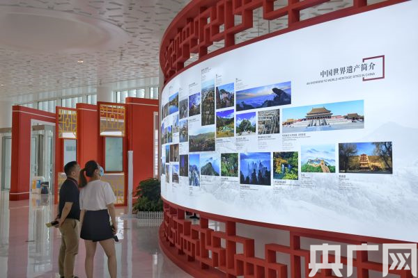 “世界遺產(chǎn)在中國(guó)”展區(qū)運(yùn)用“中國(guó)紅”視覺(jué)色彩,展現(xiàn)中國(guó)在世界遺產(chǎn)保護(hù)方面的新思想、新理念(央廣網(wǎng)發(fā) 龔雯攝)