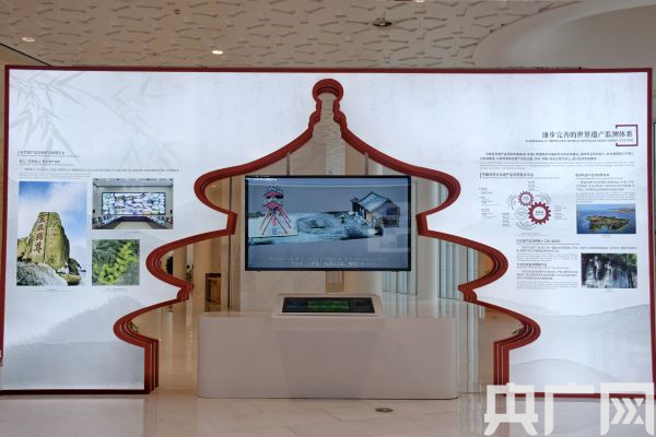 展覽展示了中國(guó)較完善的世界遺產(chǎn)監(jiān)測(cè)體系與監(jiān)測(cè)預(yù)警平臺(tái)(央廣網(wǎng)發(fā) 龔雯攝)