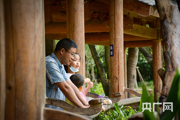 屏山公園內(nèi)綠樹(shù)成蔭、環(huán)境優(yōu)美,游客正在長(zhǎng)廊歇息(央廣網(wǎng)發(fā) 嚴(yán)南悅攝)