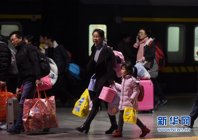2月2日,旅客帶著孩子抵達福州火車站。新華社記者 宋為偉 攝