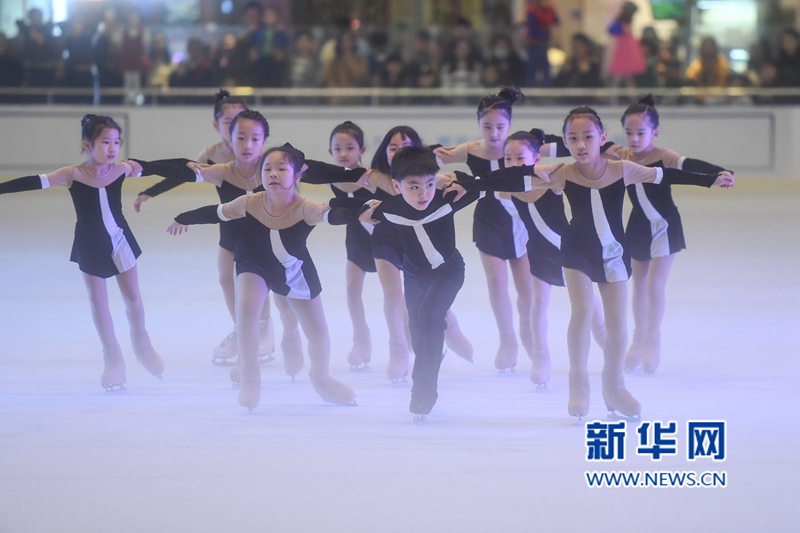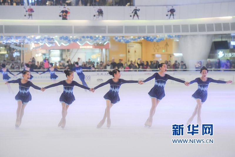 12月22日,在福建省福州市一家商場(chǎng)里,青少年在表演冰上隊(duì)列滑。新華社記者 宋為偉 攝 -