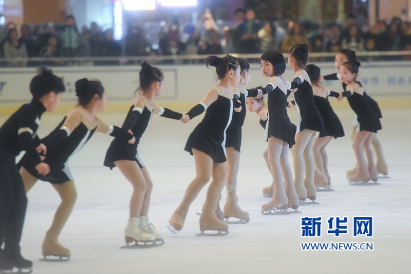 12月22日,在福建省福州市一家商場(chǎng)里,小朋友在表演冰上隊(duì)列滑。新華社記者 宋為偉 攝