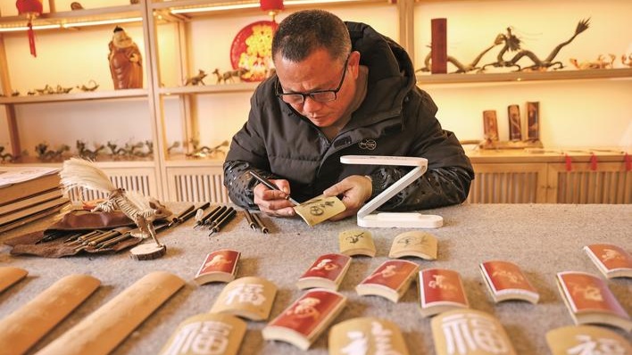 新春將至,在三明市寧化縣安樂鎮(zhèn)謝坊村,市級(jí)非遺項(xiàng)目留青竹刻代表性傳承人曹永生正帶著徒弟們趕制一批充滿年節(jié)氣息的留青竹刻作品。