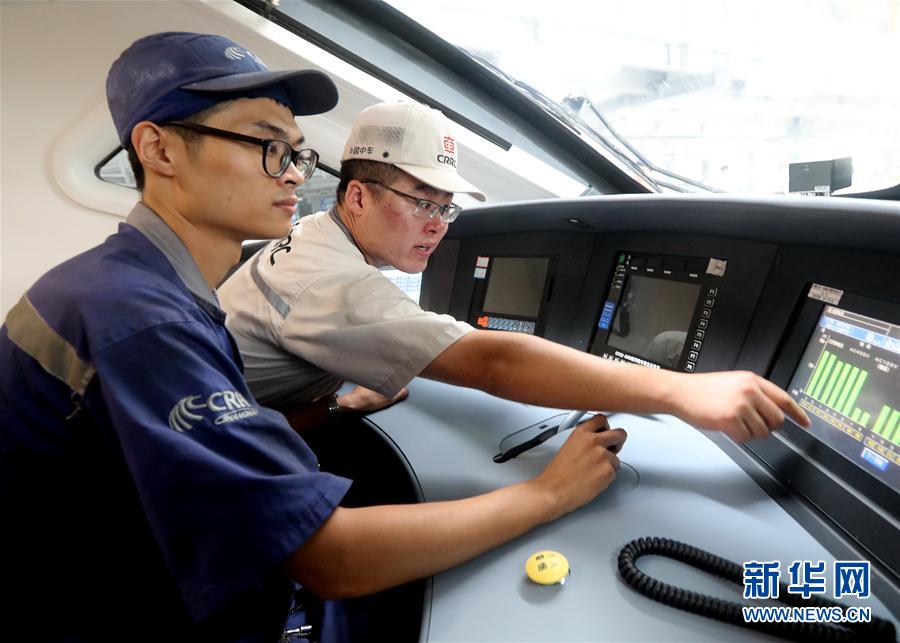 9月26日,技術(shù)人員在對CRH6A新型動車組進行調(diào)試與檢查。 新華社記者 陳飛 攝 -