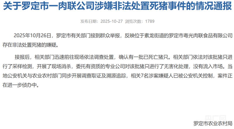廣東羅定一企業(yè)非法處置死豬 官方通報(bào):沒有流入市場,7名涉案嫌疑人已被控制
