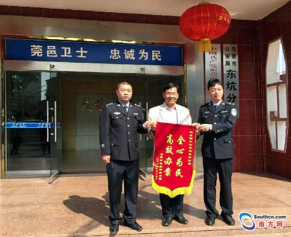 價值約185萬元的金錢龜、石金錢龜失而復(fù)得,事主盧先生甚為感概。他專門制作了錦旗,與東莞市龜業(yè)研究會有關(guān)負責(zé)人前來東坑公安分局道謝。盧先生緊緊握住辦案民警的手,顯得很激動。