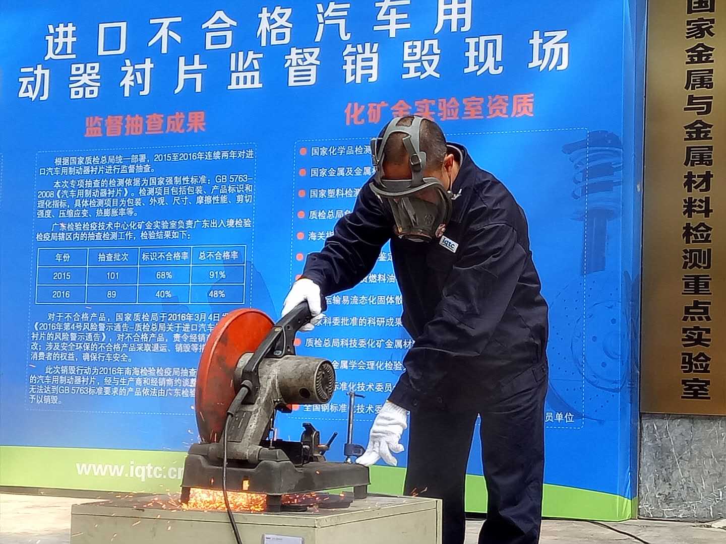 據(jù)介紹,質(zhì)檢總局從2015年起連續(xù)兩年將進口汽車用制動器襯片列入年度進出口重點商品監(jiān)督抽查,廣東檢驗檢疫技術中心化礦金屬材料實驗室作為檢驗檢疫系統(tǒng)內(nèi)首個具備《汽車用制動器襯片》強制性標準全項目檢測的實驗室,通過了CNAS與CMA評審,并率先承擔了進口汽車用制動器襯片監(jiān)督抽查檢驗任務,成為國家質(zhì)檢總局指定的監(jiān)督抽查三家檢測機構之一。2015及2016年,該實驗室分別抽查檢驗口汽車用制動器襯片101和89批次,不合率為91%和48%。對于不合格產(chǎn)品,檢驗檢疫部門對相關經(jīng)銷商/生產(chǎn)企業(yè)開展約談、督促整改,責令相關不合格產(chǎn)品采取下架和整改;對無法整改、涉及質(zhì)量安全的不合格產(chǎn)品督促其退運或銷毀,保障消費者的權益,確保行車安全。