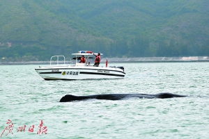 深圳邊防支隊(duì)官兵正在受傷擱淺的抹香鯨