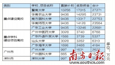 同時,7411萬元將投入市屬學校。廣州大學、廣州醫(yī)科大學、深圳大學各獲1821萬到2962萬元不等的資金支持。