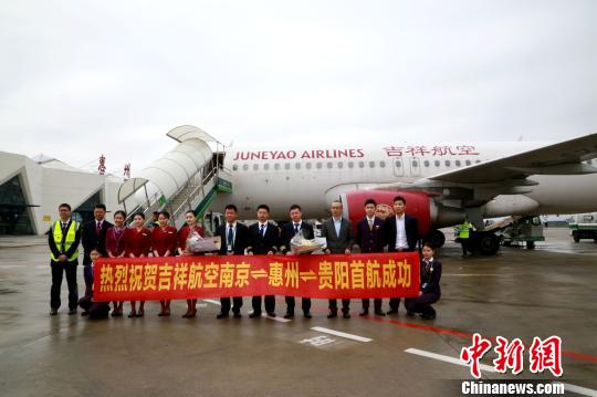 圖為惠州往返南京、貴陽航線的首航儀式26日在惠州機場舉行 潘美樺 攝