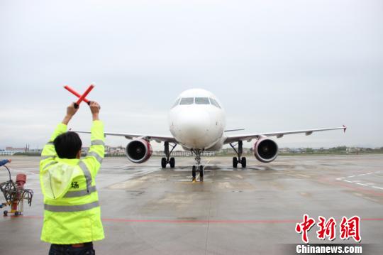 圖為剛剛開通的惠州往返南京的航線平穩(wěn)降落惠州機場 楊振達 攝