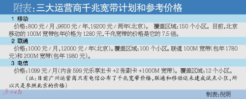 廣州日報(bào)記者調(diào)查后發(fā)現(xiàn),千兆寬帶普及還需時(shí)日。首先,千兆寬帶仍處于推廣初期,覆蓋范圍有限且費(fèi)用較高(見附表)。其次,享受千兆寬帶的服務(wù),必須用戶升級(jí)家中的相關(guān)硬件,如光貓、路由器、網(wǎng)線和網(wǎng)卡等。