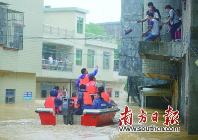 7日上午,南方日報記者在增城中新鎮(zhèn)九和村村口看到,路邊檔口多被水淹,村口停的小車“漂浮”在水里。據(jù)搶險人員介紹,他們早上7時前到達現(xiàn)場時,省道S118九和段已經(jīng)有500米道路阻斷。截至下午2時,整個九和村的受災點平均水深有1米多,多間泥磚房倒塌。鎮(zhèn)政府和三防成員單位出動多臺沖鋒舟、橡皮艇進行救援,成功轉(zhuǎn)移了豐鼎廠40名被困工人、九和小學10余名小孩等,同時通過兩臺大巴車轉(zhuǎn)移身體不適的受災人員。
