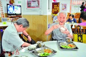 廣州日?qǐng)?bào)訊 兩肉一菜一例湯只要8元,在廣州市越秀區(qū)礦泉街長(zhǎng)者飯?zhí),轄區(qū)老人只需要花8元就可享受葷素搭配的午餐。在越秀區(qū),已有21個(gè)老人助餐配餐點(diǎn)投入運(yùn)營(yíng),每餐價(jià)格最低8元最高15元。到今年底,越秀區(qū)會(huì)新增31家助餐配餐點(diǎn),每條街道都有兩到三家配餐點(diǎn)。