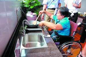 市民體驗為殘障人士設(shè)計的廚房。 廣州日報全媒體記者高鶴濤攝