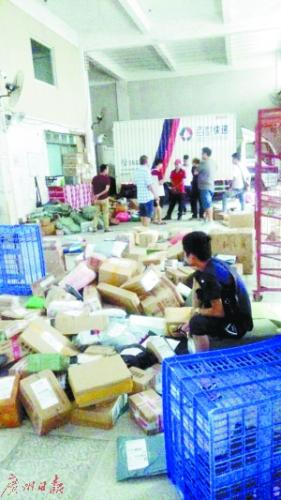 快遞點快件堆積如山。 廣州日報全媒體記者高鶴濤 攝