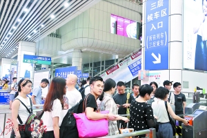 假期去機(jī)場(chǎng)建議搭地鐵。 廣州日?qǐng)?bào)全媒體記者黎旭陽(yáng) 攝