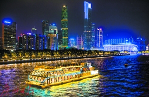 5日晚,“廣州財富號”游船載著部分論壇嘉賓,一覽珠江美景。廣報全媒體記者陳憂子攝