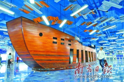 南沙客運港站為了突出海上絲綢之路,運用藝術石材、文化雕塑和藝術燈具等多種材料,對車站進行全新的包裝設計。南方日報記者符超軍攝