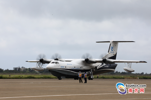 上午10時(shí)45分,艷陽(yáng)高照下,珠海機(jī)場(chǎng)停機(jī)坪上的AG600發(fā)出震耳欲聾的轟鳴聲。隨著螺旋槳的高速旋轉(zhuǎn),飛機(jī)開(kāi)始滑行。約半個(gè)小時(shí)后,飛機(jī)已在跑道上完成了兩次調(diào)頭,滑行試驗(yàn)結(jié)束。