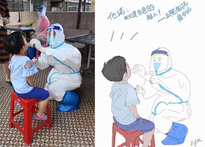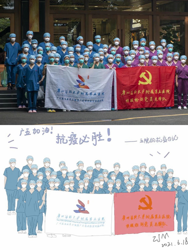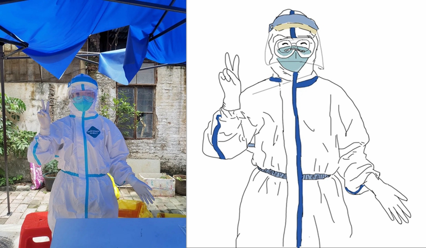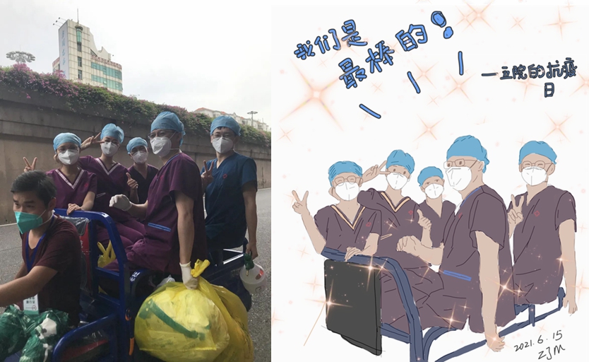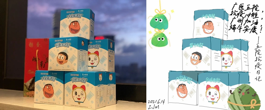 在大家奮戰(zhàn)一線的同時,攻堅隊隊員、醫(yī)學影像科張佳敏,利用短暫的休息時間化身“靈魂”畫手,通過一張張可愛的漫畫日記,記錄了廣醫(yī)五院支援醫(yī)療隊工作的點點滴滴。