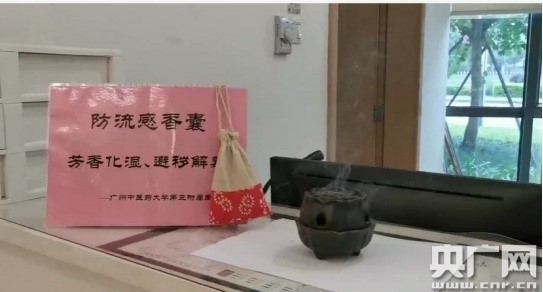 防流感香囊及中藥煙熏。(央廣網(wǎng)發(fā))