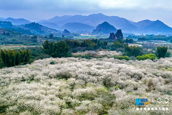 每年1月底2月初,桂峰村的李樹花開,漫山遍野白茫茫一片,猶如皚皚的“雪原”。新華網(wǎng)發(fā)(巢金紅攝)
