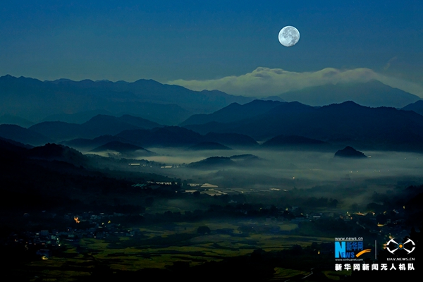 在月光照耀下,桂峰村顯得格外寧靜。新華網(wǎng)發(fā)(巢金紅攝)