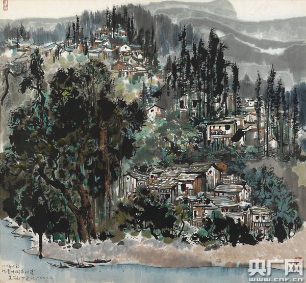 在眾多的拍賣(mài)品中,最受矚目的是吳冠中的《貴州侗家山寨》,以高于估價(jià)3倍2,315萬(wàn)港元成交,成為今次春拍最高的成交價(jià)作品!顿F州侗家村寨》畫(huà)面構(gòu)圖嚴(yán)謹(jǐn)而飽滿,用色繁富而細(xì)膩,為其80年代初頗具代表性的貴州系列墨彩作品。吳冠中另一代表作《盆景海》亦以 935萬(wàn)港元成交,可見(jiàn)吳冠中在拍賣(mài)市場(chǎng)中具有一定的地位。