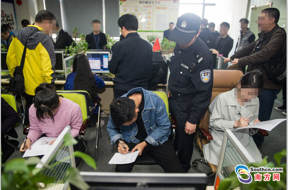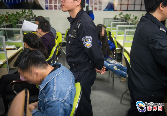 收網(wǎng)行動,警方破獲一網(wǎng)絡詐騙案,圖為抓捕行動現(xiàn)場。