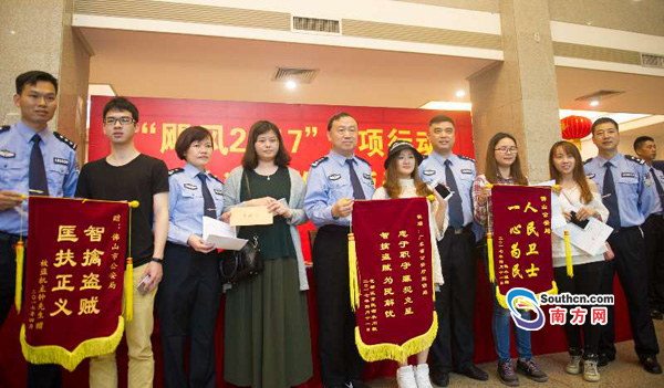 失主領(lǐng)回被盜手機(jī)并向警方贈送錦旗。