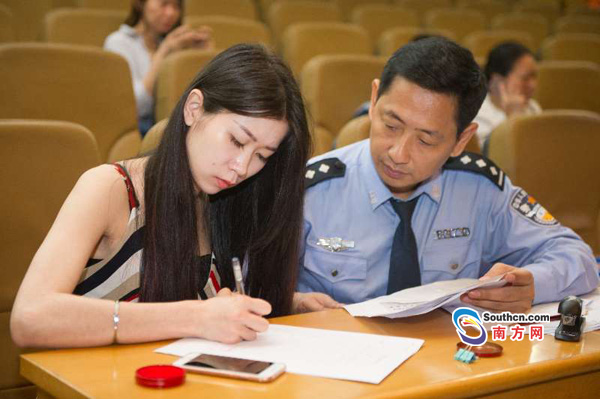 失主辦理手續(xù)領(lǐng)取被盜手機(jī)。