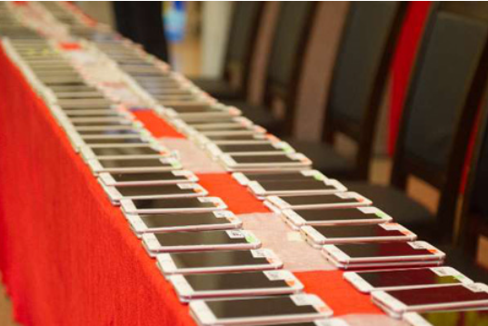 現(xiàn)場發(fā)還的100臺手機(jī)。