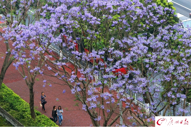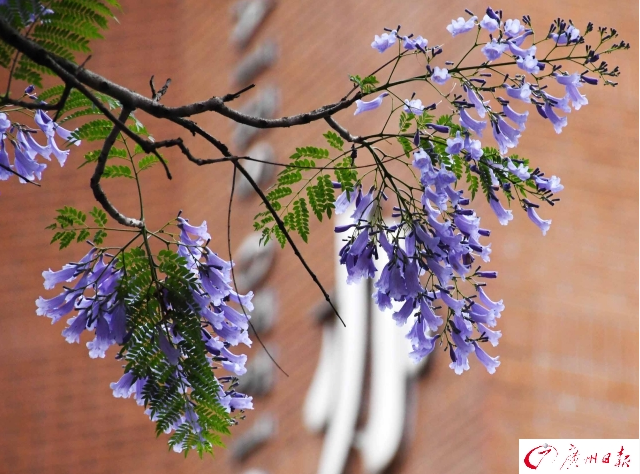 據(jù)廣州日?qǐng)?bào)報(bào)道:進(jìn)入五月,原產(chǎn)于南美洲的藍(lán)花楹在廣州二沙島星海音樂廳近的馬路兩旁盛開。廣報(bào)多媒體記者黎旭陽(yáng)攝
