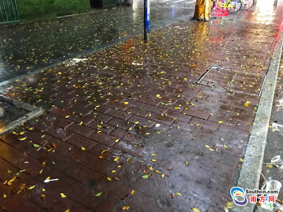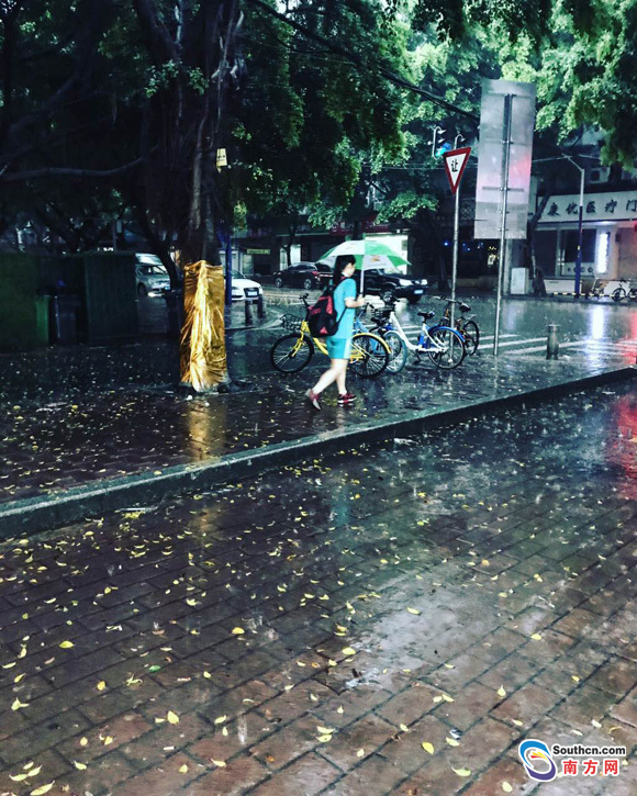 5月4日清晨,廣州開啟暴雨模式,經歷一夜暴雨沖刷,路面被黃葉覆蓋,拖鞋短褲成為今晨最佳標配。