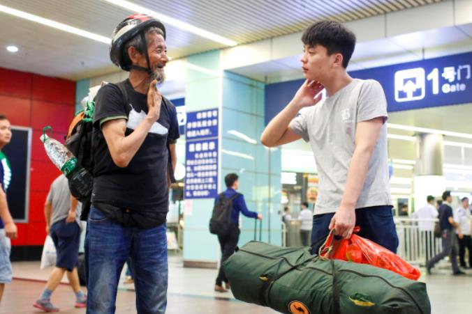 據(jù)廣州日?qǐng)?bào)報(bào)道:66歲的天津老人劉憲奎一個(gè)多月前從天津騎行到深圳,不想折返時(shí)在廣州迷了路,被8日晚的一場(chǎng)暴雨困在了中山大道的一座立交橋下。迷途中,老人偶遇了一名暨南大學(xué)的學(xué)生。雖然只是一面之緣,年輕人卻不禁為老人擔(dān)心,正值雨季路途難行,怕老人身體吃不消。于是,他和同學(xué)一起湊錢給老人買了火車票。昨天,這名小伙子將老人送上回家的旅程。