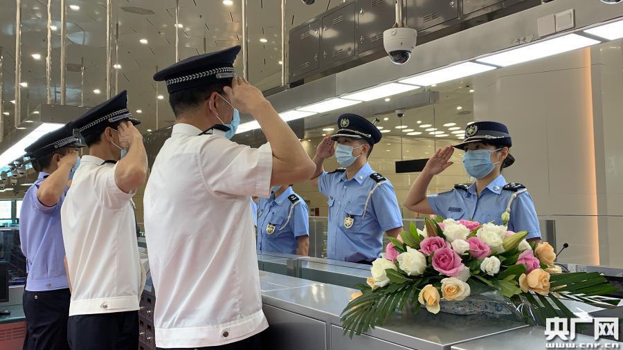 “全體都有,向左向右轉(zhuǎn),目標執(zhí)勤崗位,齊步走!敝笓]員響亮的口令聲響起。雙方執(zhí)勤隊伍整齊劃一地走上崗位,“肩并肩”“面對面”地忙碌起來。在“合作查驗、一次放行”新型通關(guān)模式下,不同類型旅客分別從“合作自助、合作人工和傳統(tǒng)人工”三種不同的查驗通道有序通行,一次性辦完雙方出入境手續(xù),跨過一道分界線,就到了珠;虬拈T,時間僅需30秒。