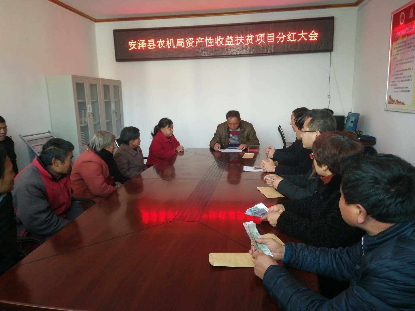 脫貧攻堅戰(zhàn)打響以來,以“五個一批”脫貧方略為指導,全縣上下各個部門都在為貧困戶定措施,找路子,量身定制脫貧計劃。農機部門自覺擔當,積極履行自身職能,構建起“聚各類資源,凝各界之力、助力脫貧攻堅”的扶貧工作格局。提高農機合作社和貧困戶收益是農機扶貧的根本目的。通過縣委政府、農機部門、農機合作社同心協(xié)力,多措并舉,確保農機合作社和貧困戶收益最大化。安澤縣農機局于2017年初,向省市農機局爭取到的農機社會化服務建設項目,項目資金10萬元,項目要求用于農機合作社資產收益扶貧工作。也就是通過向農機合作社注入財政整合資金,形成固定資產,量化為股,村集體代持,貧困戶以股入社,與農機合作社利益聯(lián)動、按股分紅、增加收入,逐步實現穩(wěn)定脫貧。為使項目的實施做到公開透明,年初由班子會研究決定,并于冀氏鎮(zhèn)政府協(xié)商后,由冀氏村的鋤禾農機服務專業(yè)合作社來具體實施,合作社對機具進行單獨核算。年終純收益的60%用于貧困戶的分紅,40%用于合作社的發(fā)展。通過協(xié)商決定收益后對冀氏村5戶、半道村5戶共10戶貧困戶進行收益分紅。局里重點對扶貧項目申報、實施、驗收和扶貧資金管理、使用、收益等方面進行全方位的監(jiān)督。