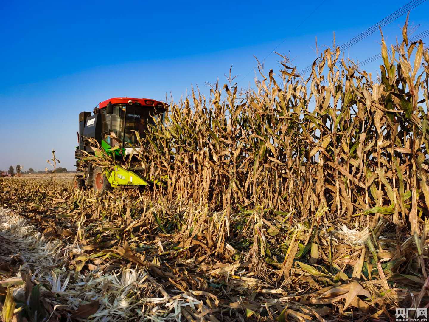 。▓D為10月5日,在滑縣老店鎮(zhèn)堯頭村,一輛玉米收割機正在收割玉米。記者王紅霞 攝。)