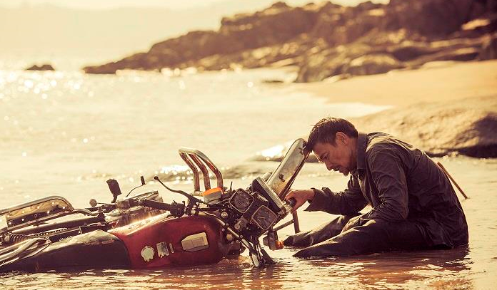雷澤寬騎著舊摩托車奔馳在綿延的鄉(xiāng)間公路上,插在車尾的大旗迎風展開。經過旅途的風吹雨打,旗已不新了,但上面印著的男孩的笑臉,仍嶄新如初。
