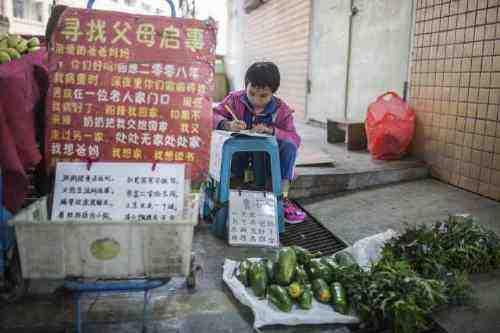 2月24日,春寒料峭。東莞市塘廈鎮(zhèn)蓮湖中心市場口,9歲的小女孩毛毛放學后來到這里,像往日一樣擺攤賣菜。她身旁一塊紅色的牌子格外引人關注:“親愛的爸爸媽媽,你們好嗎?回想2008年我病重時,深夜你們偷偷將我丟放在一位老人的家門口,現(xiàn)在我病好了,盼接我回家。”
