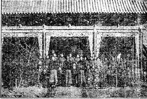 3.大佛寺長春縣教養(yǎng)工廠正門。照片前排為該廠廠長和管理人員等,后二排是該廠教養(yǎng)的犯人。