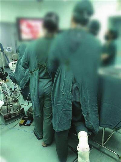 李炎的腿一跪就是三個多小時,手術順利完成,李炎的腳卻已腫得動不了。