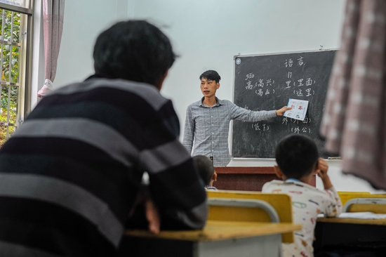 3月8日,大華寮村教學(xué)點(diǎn),吳光明旁聽(tīng)吳志平講課。