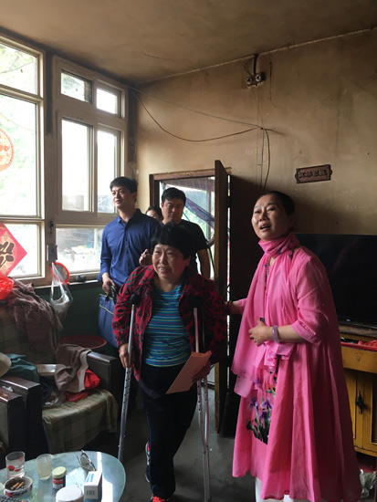 中華慈善總會(huì)貧困母親救助負(fù)責(zé)人李風(fēng)亞、項(xiàng)目執(zhí)行主任冰華、楊勇等一行到興壽鎮(zhèn)桃林村貧困母親張桂紅(化名)家中了解情況(攝影 蘇紅)