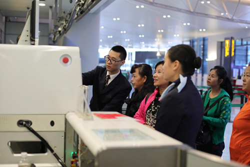 據(jù)統(tǒng)計,虹橋機場日均出港人數(shù)高達31000人次,而70%的客流量密集在虹橋機場東航B島值機柜臺,預計進博會期間人流量會持續(xù)增加。為保證旅客能夠快速出行,東航地服部已新增設8臺自助托運機器,目前12臺自助托運機器均提前開放并安排專人在旁引導,每位旅客平均2分鐘就能辦理完成行李托運。