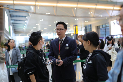 2005年入職的王欣,在東航一干就13個年頭,曾多次參加過重大保障任務,經(jīng)驗豐富的他自豪地說:“我和我的同事們一早就打起十二分精神,今天我們五點到崗開始維持現(xiàn)場值機區(qū)域秩序,力爭為旅客提供優(yōu)質高效的服務! 這既是每一位東航人的自豪,也是地面服務人員肩上的責任。
