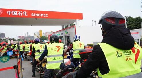 返鄉(xiāng)“摩騎”在中國石化加油站排隊等待加油(圖片來源:中國石化)