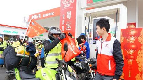即日起至1月27日,中國石化在廣東為1萬名“返鄉(xiāng)摩騎”免費加油,并贈送1萬份太平意外保險,1萬份騎行雨衣、護膝、背心“安全三件套”以及1萬份易捷福袋(內(nèi)有面包、水、八寶粥等食品)。同時,攜手廣東郵政EMS為“返鄉(xiāng)摩騎”免費寄送1萬份行李,與粵運交通開通15輛免費愛心大巴和2輛重點工程建設者返鄉(xiāng)直通車。春運期間,廣東、廣西、江西、貴州四省248座中國石化加油站將變身“情暖驛站”,與廣東共青團共同組織5000多名志愿者,為所有春運返鄉(xiāng)車主提供“1+10+X”免費服務。